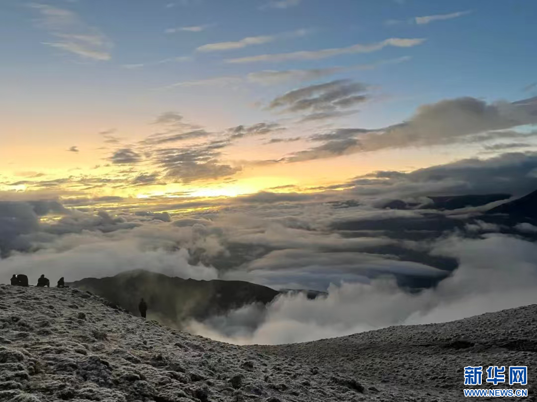 日出前,山间的风还是浸人心脾的凉,但已经有游客登上了日沃庆山。在山脚下露营基地休息一夜后,他们爬山等待日出,还将摄像头对准云海。拍摄之后,游客们下山用餐,日沃庆生态露营基地也迎来新一天的忙碌。