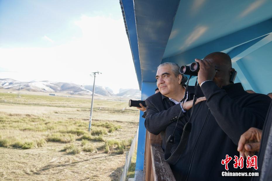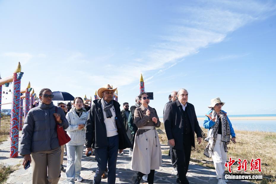 图为代表团一行参访青海湖生态保护区。中新社记者 马铭言 摄