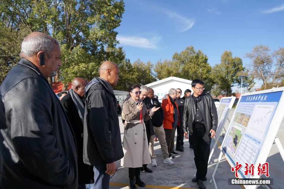 图为在青海湖普氏原羚人工救助繁育科研基地内,代表团成员了解普氏原羚保护现状,学习濒危野生动物保护繁育经验。中新社记者 马铭言 摄
