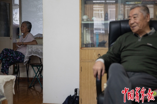 黄克骥老人接受采访时,爱人一直坐在客厅里旁听。郑萍萍 摄
