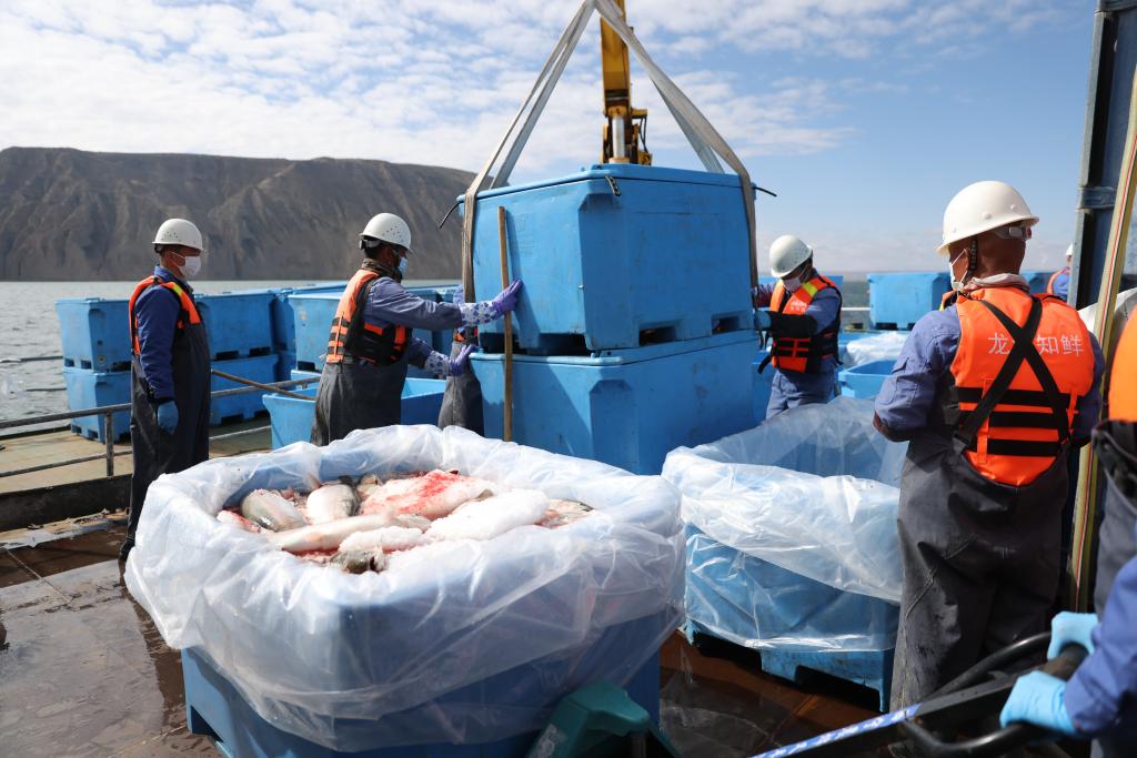 这是10月18日吊装冷水鱼的现场。新华社记者 吕帅 摄