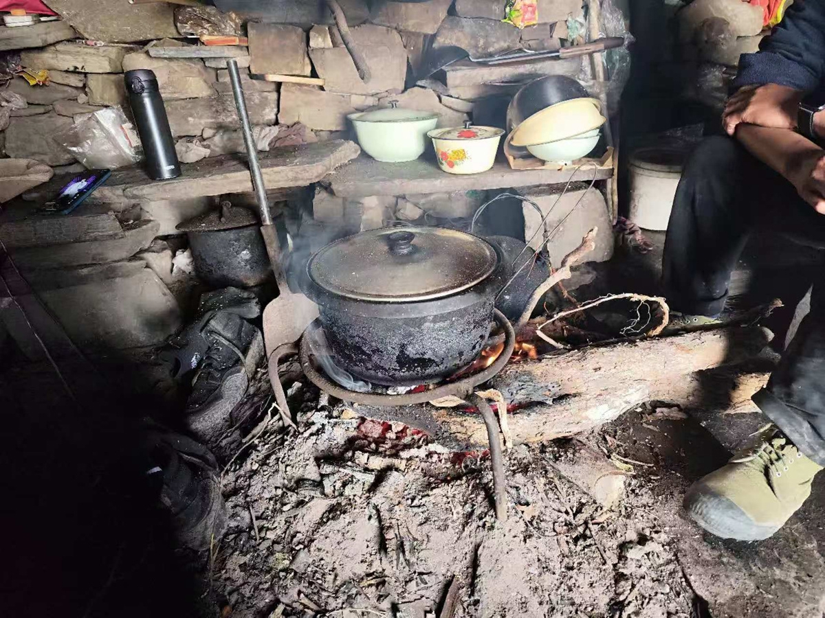 调查队员调查期间在牛棚中休息。图片由受访者提供