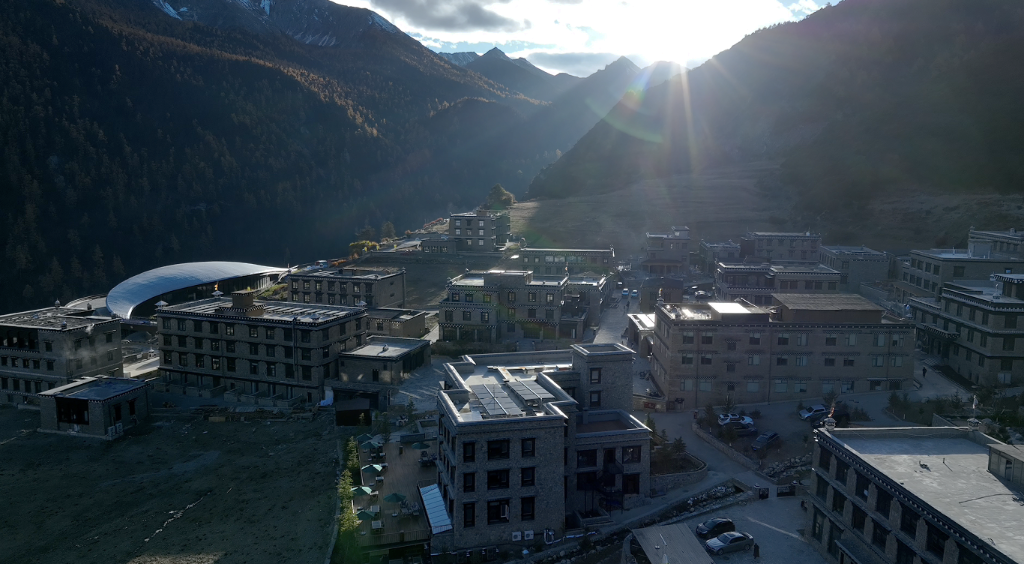 如今,走进亚丁村,一栋栋极具民族特色的“黑藏房”错落有致地散落在半山腰上。村子依托景区发展起来了酒店、民宿、餐饮、画廊、香巴拉文化博物馆等新业态,弥散式供氧、集中供暖等现代化设施配备齐全。“以前只有夏天能做旅游生意,现在供氧供暖解决了,一年四季都能接待游客,保证了收入来源。”亚丁村村干部四郎泽仁告诉记者。