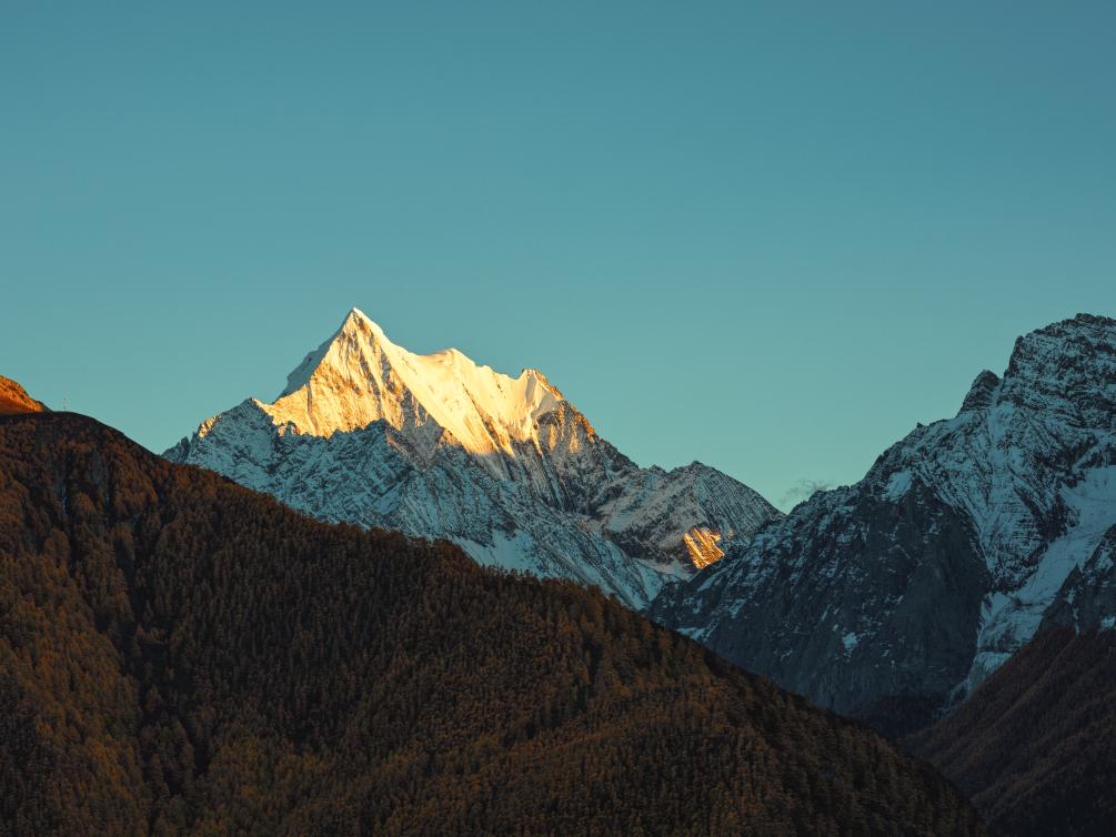 夏诺多吉雪山呈现日照金山景观。新华社记者 薛晨 摄