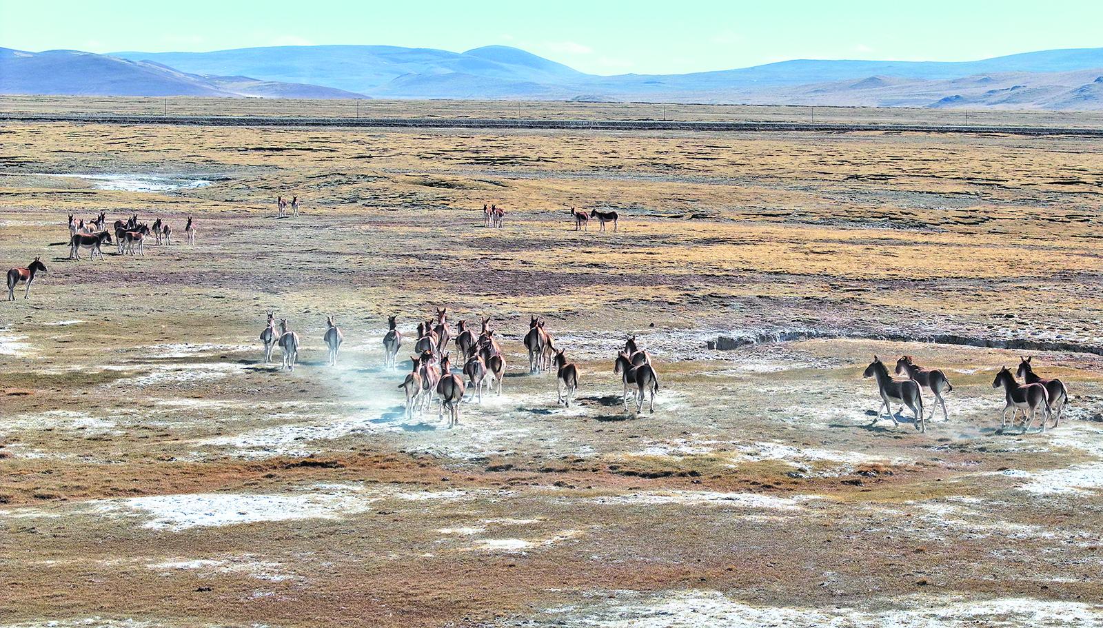 荒原上奔驰的藏野驴。本版图片均由本报记者 张多钧 才贡加 王玉莹 摄