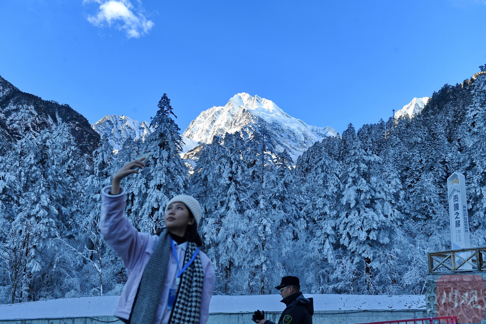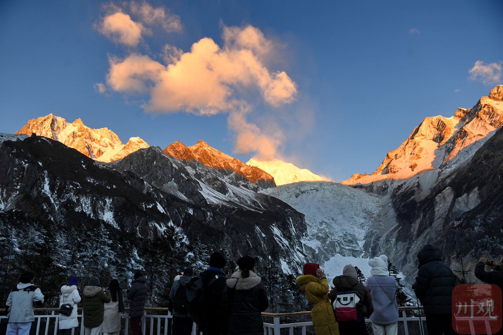 据了解,被誉为“蜀山之王”的贡嘎雪山海拔7556米,连日来,在四川省甘孜州看日照金山、赏冰雪、泡温泉、品美食,“冬游甘孜”别样风光吸引八方游客。