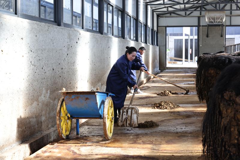 冬日,走进位于香格里拉市小中甸镇和平村小中甸村民小组的香格里拉市嘉吉棕种养有限公司牦牛养殖场,一套套现代化的养殖设备映入眼帘。套上工作服,穿过消毒室,来到生产区,便见公司负责人嘉吉棕拉初和丈夫陈旭江正忙着投喂草料、清理牛粪。