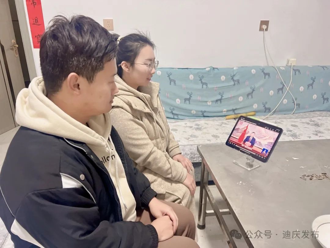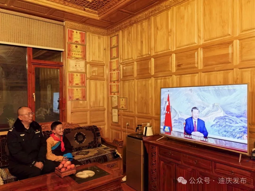 岁末年初,是人们回望过去、展望未来的重要节点,自2013年岁末起,习近平主席已连续十年发表新年贺词,为成就喝彩、为人民点赞、为时代讴歌、为奋斗聚力。当2025年新年贺词如约而至,来自迪庆州公安局森林警察支队的李欣泉满怀期待与感慨,和正在上小学的儿子李想一起收听收看2025年习近平主席新年贺词直播,为儿子细细品读这其中的字字句句,带孩子去体会其中的万千寓意。同时语重心长告诫儿子,习近平主席的这番话语,透露出的这种坚实、这股力量、这番神采、这份底气,是中华儿女努力拼搏奋斗的结果。同样,也是伟大祖国久久为功的真实写照。李欣泉鼓励孩子要从中汲取中国力量,树立远大志向,坚定信心,乘风破浪,勇敢追梦。