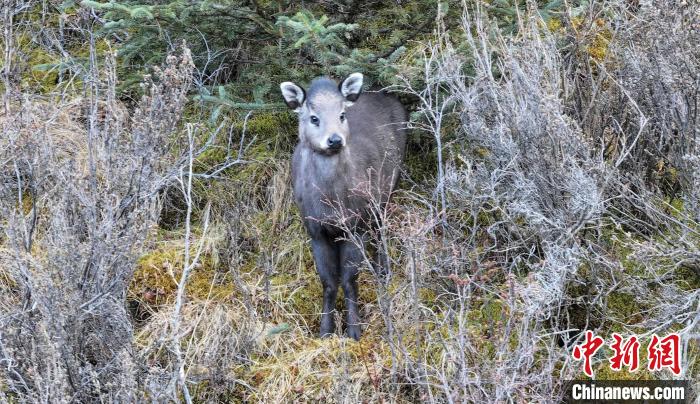 记者6日从青海省果洛藏族自治州班玛县委宣传部获悉,该县融媒体中心记者在班玛县公安局森林警察大队的帮助下,蹲守10多天,近距离拍摄到了两只国家二级保护动物毛冠鹿的影像。