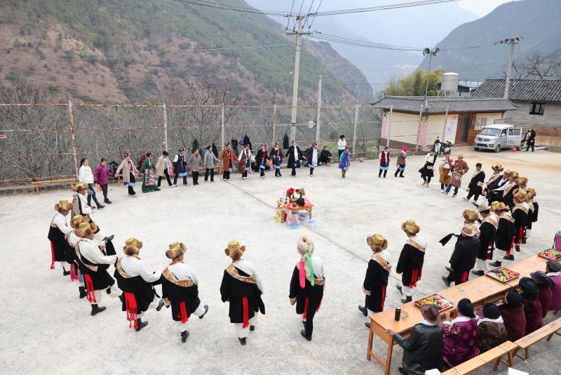 春节期间,维西县塔城镇其宗村止扎村民小组组织了丰富的新春庆祝活动,村民们身着民族盛装,齐聚一堂,手拉手跳起传统锅庄舞,传递着人们对新一年的美好祝愿,处处洋溢着浓郁的新年气息。图为村民手拉手跳锅庄舞庆贺春节。