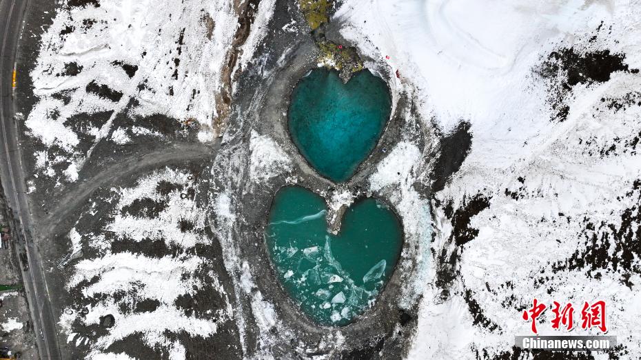 图为岗什卡雪峰景区内的连心湖。(无人机图片)中新社记者 薛蒂 摄