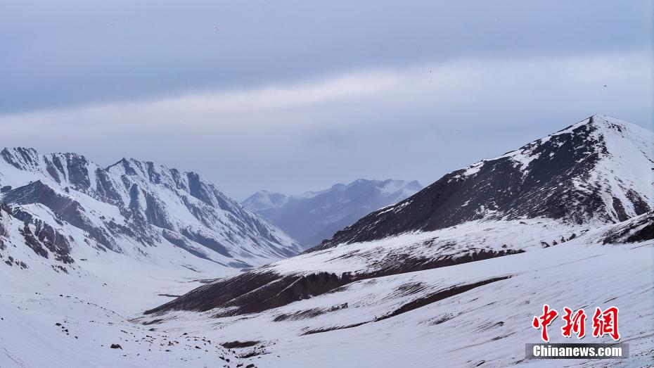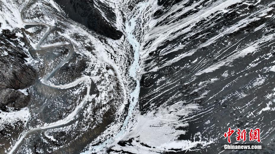 图为岗什卡雪峰山间沟壑。(无人机图片)中新社记者 薛蒂 摄