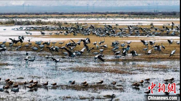 图为灰鹤等野生鸟类群。都兰县委宣传部 供图