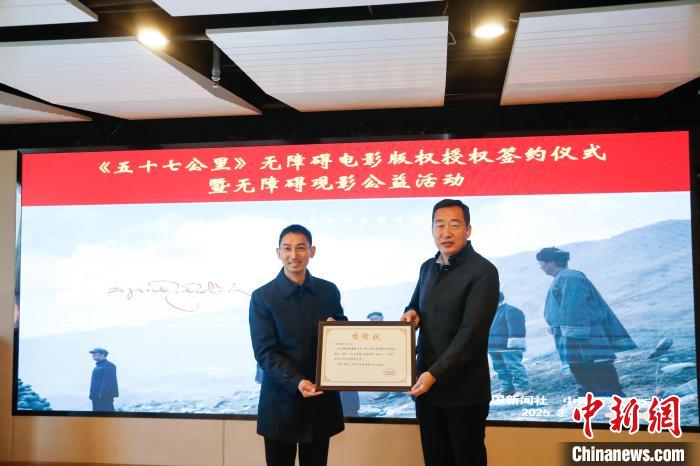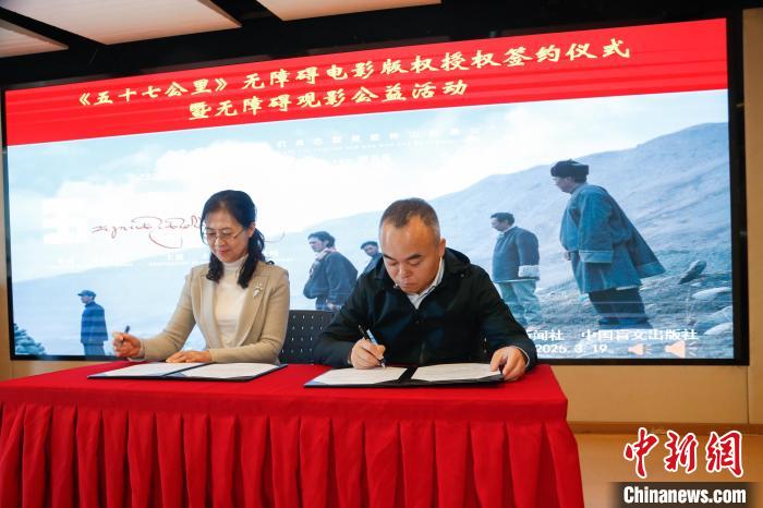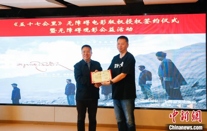 3月19日,由中共青海省果洛藏族自治州玛沁县委、玛沁县人民政府、中国新闻社青海分社、中国移动通信集团有限公司联合出品,中新社(北京)国际传播集团有限公司青海分公司承制的微电影《五十七公里》无障碍电影版权授权签约仪式在北京举行。中国新闻社青海分社无偿授权中国盲文出版社制作该影片的无障碍版本,为残障人士提供文化服务。无障碍电影以公益为目的,根据盲人、聋人等残障人士影视欣赏需要,在确保原创剧本基础上,为部分画面增加旁白解说、手语及字幕,帮助残障人士无障碍欣赏影片、感知电影魅力,保障残障群体文化权益。