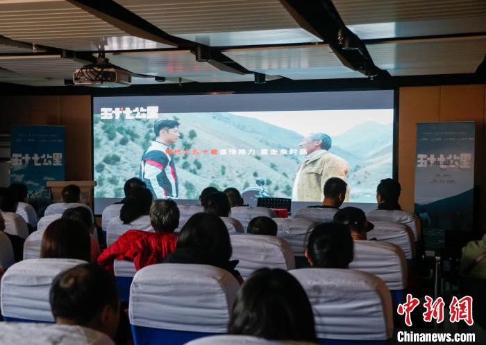 图为现场播放《五十七公里》宣传片。中新社记者 马铭言 摄