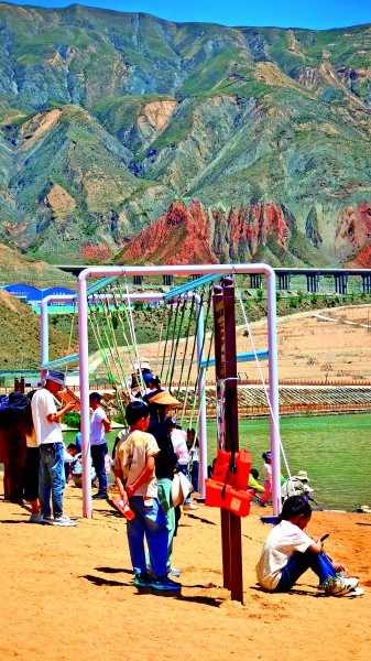 德吉村的露天沙滩上,游客正享受高原慢时光。光明图片 严瑞 摄