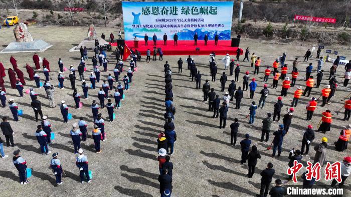 14日,青海省玉树藏族自治州2025年全民义务植树活动暨国土绿化通天河流域水源涵养生态保护修复项目现场推进会在玉树市举行,标志着玉树州全面启动今年的国土绿化工作。