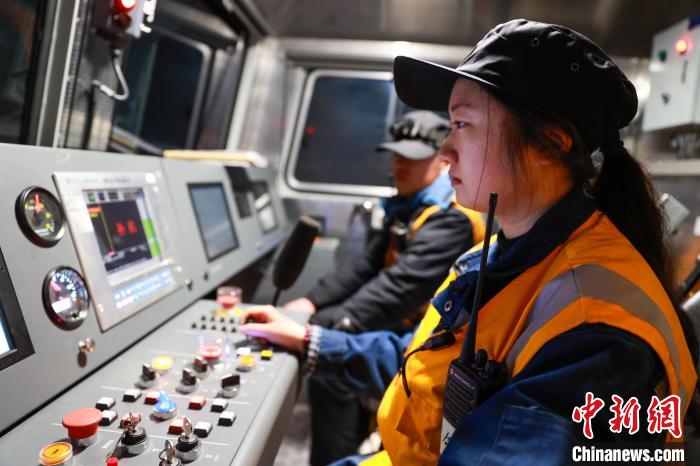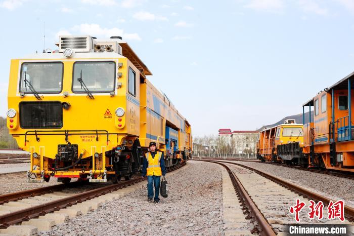 4月27日,中国铁路青藏集团有限公司西宁工务机械段养路机械驾驶员俞庆操作养路设备。中新社记者 薛蒂 摄