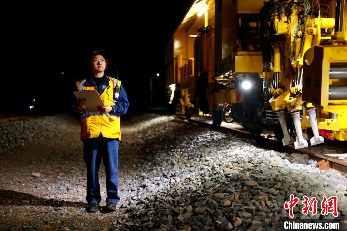 4月27日,中国铁路青藏集团有限公司西宁工务机械段养路机械驾驶员俞庆检查道岔捣固车液压油管。俞庆出生于2002年,2023年6月大学毕业后进入西宁工务机械段工作,不到两年时间里,她已经随道岔二车间走遍了青藏铁路线上的90%以上的车站,和工友们一起完成了400余组道岔的维修养护任务。中新社记者 薛蒂 摄