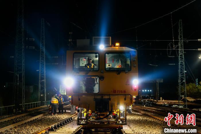 4月27日,中国铁路青藏集团有限公司西宁工务机械段养路机械驾驶员俞庆检查完大型养路机械车后返回宿营车。中新社记者 薛蒂 摄