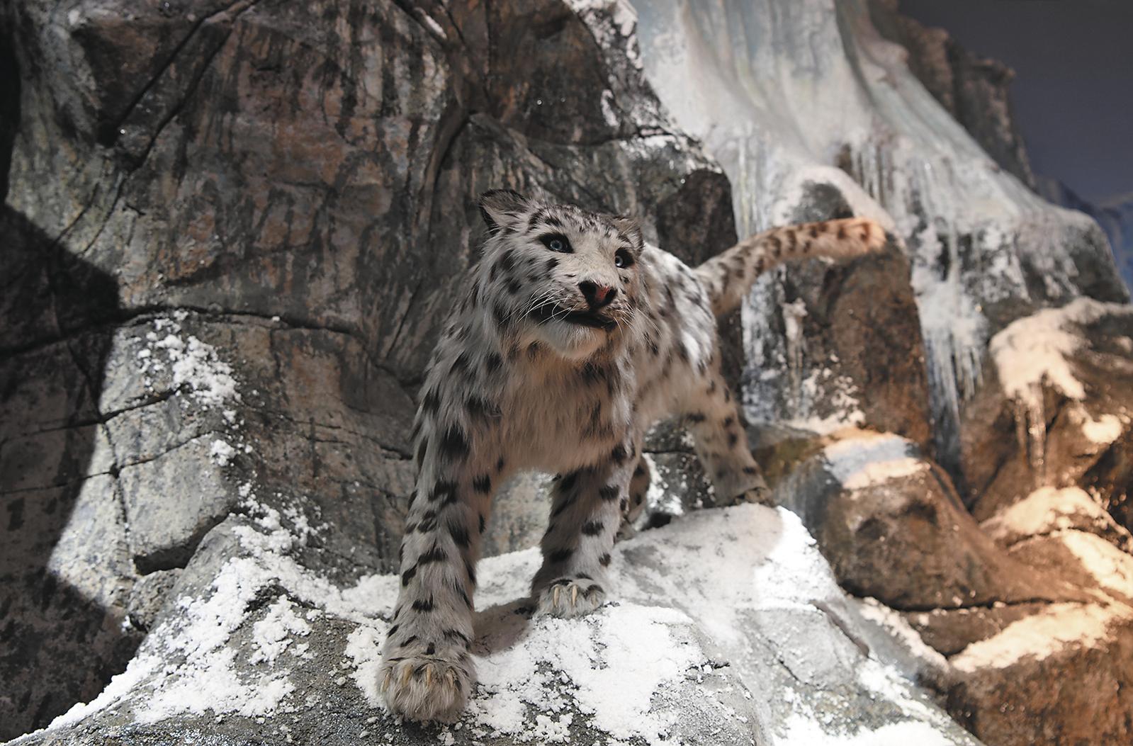 科普馆一角展示的雪豹标本。
