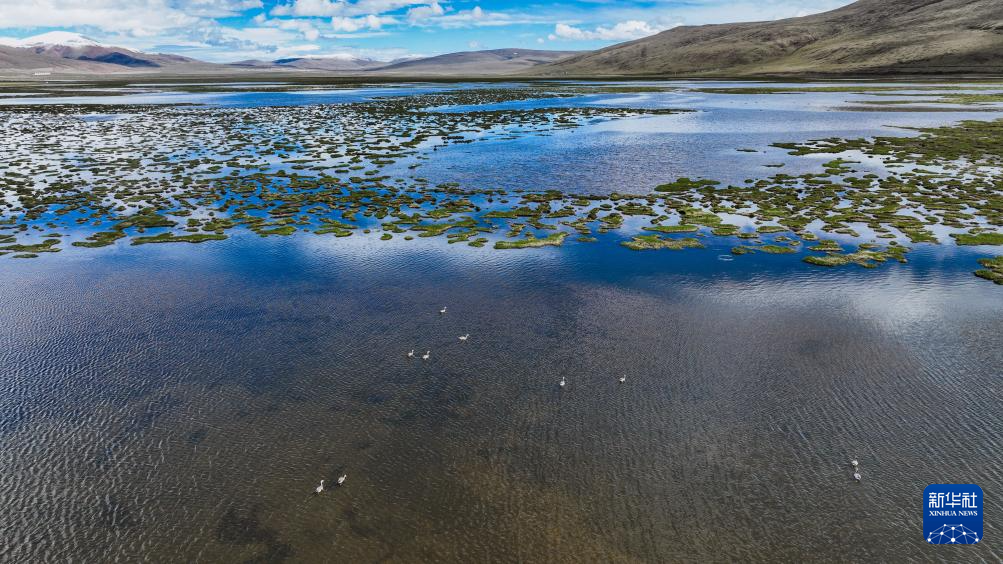 这是6月4日在青海隆宝国家级自然保护区拍摄的斑头雁(无人机照片)。新华社 杜笑微 摄