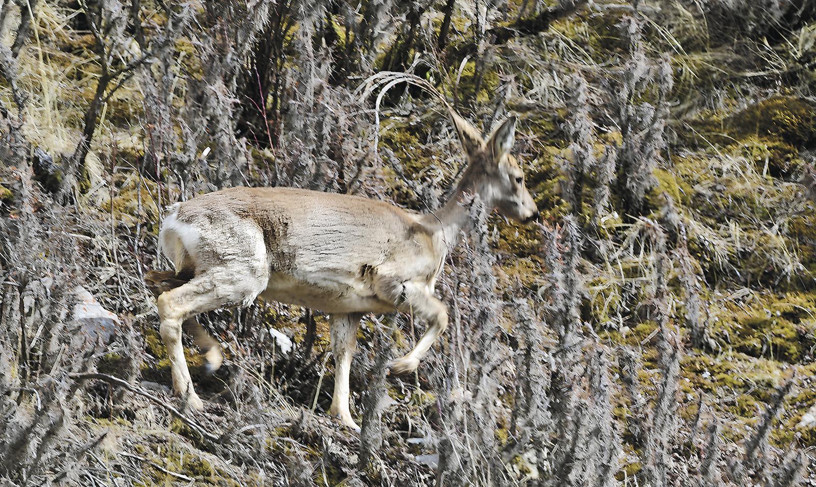 穿梭于灌木林的狍