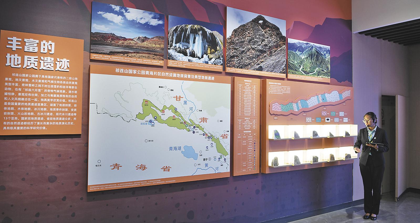 生态科普馆内,讲解员讲解祁连山丰富的地质遗迹。本版图片由本报记者 张多钧 才贡加 杨红霞 摄