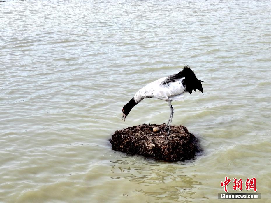 图为黑颈鹤顺利产下一枚鸟蛋。才新木加 摄