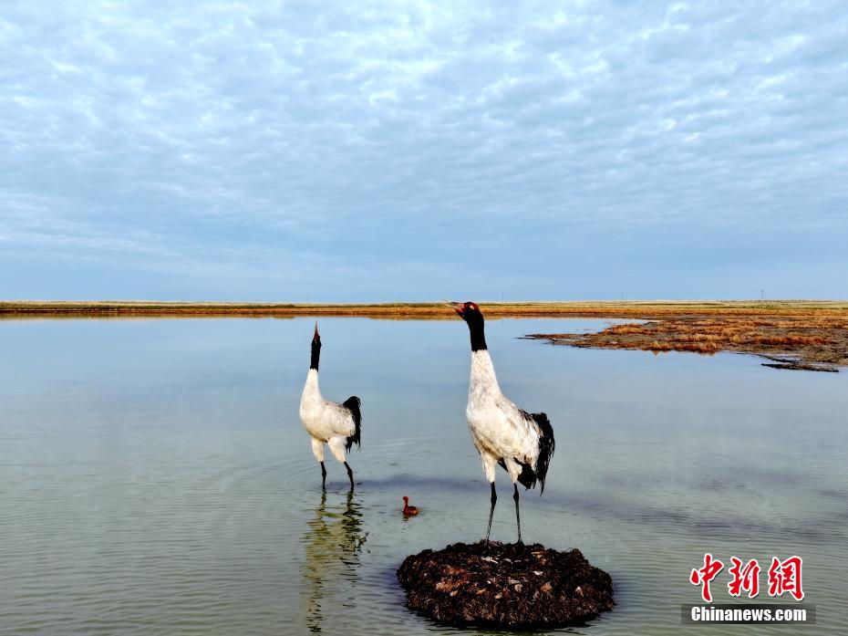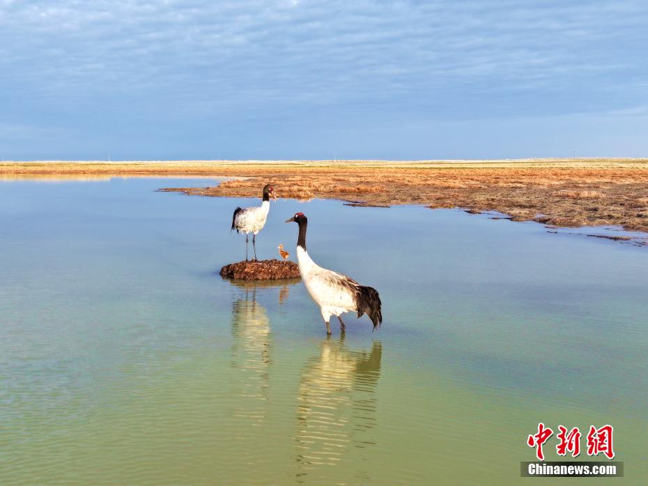 每年3月至6月,是青海湖的候鸟繁殖季。近期,摄影爱好者在青海省海北藏族自治州刚察县境内的仙女湾湿地,成功跟踪拍摄到了国家一级保护动物黑颈鹤孵化、育雏的过程。