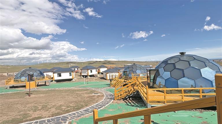 初夏,高原的风裹挟着清新的草香拂过脸颊。沿着小路漫步前行,不一会儿,一座充满未来感的深蓝色星空房出现在眼前。“相比传统帐篷,星空房具备更强的防风、防雨、保温性能,能为游客提供更安全、舒适的住宿环境。”张明边走边说,项目分两期建设,一期投入582万元,建成16套餐饮帐篷;二期投入山东援建资金1011万元,建成31顶住宿帐篷,目前正在收尾阶段。