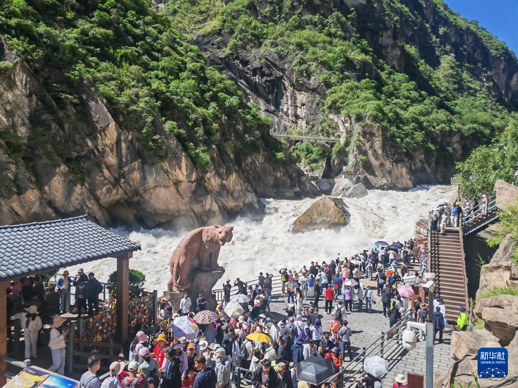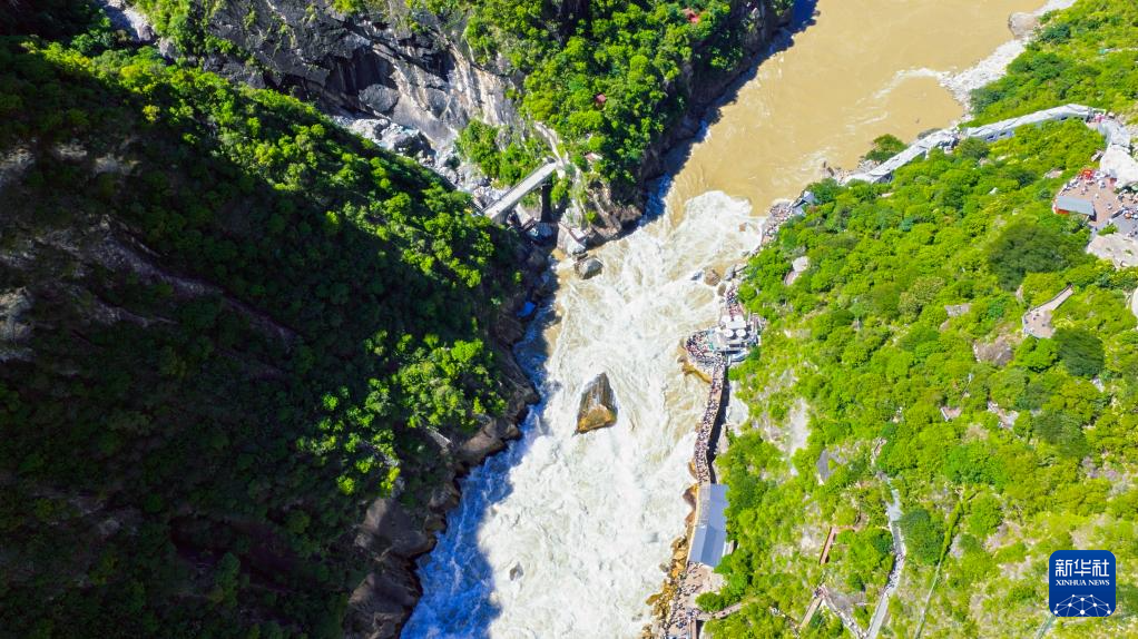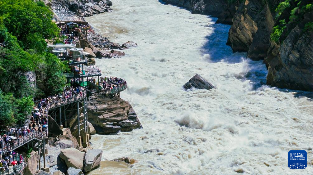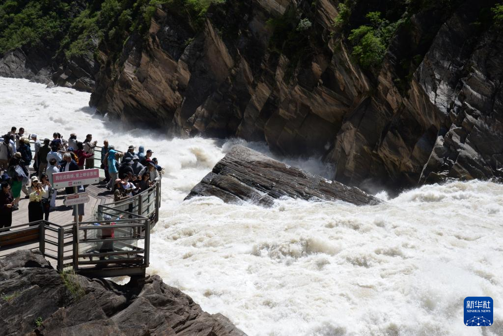 6月26日,游客在虎跳峡景区游玩。新华社记者 浦超 摄
