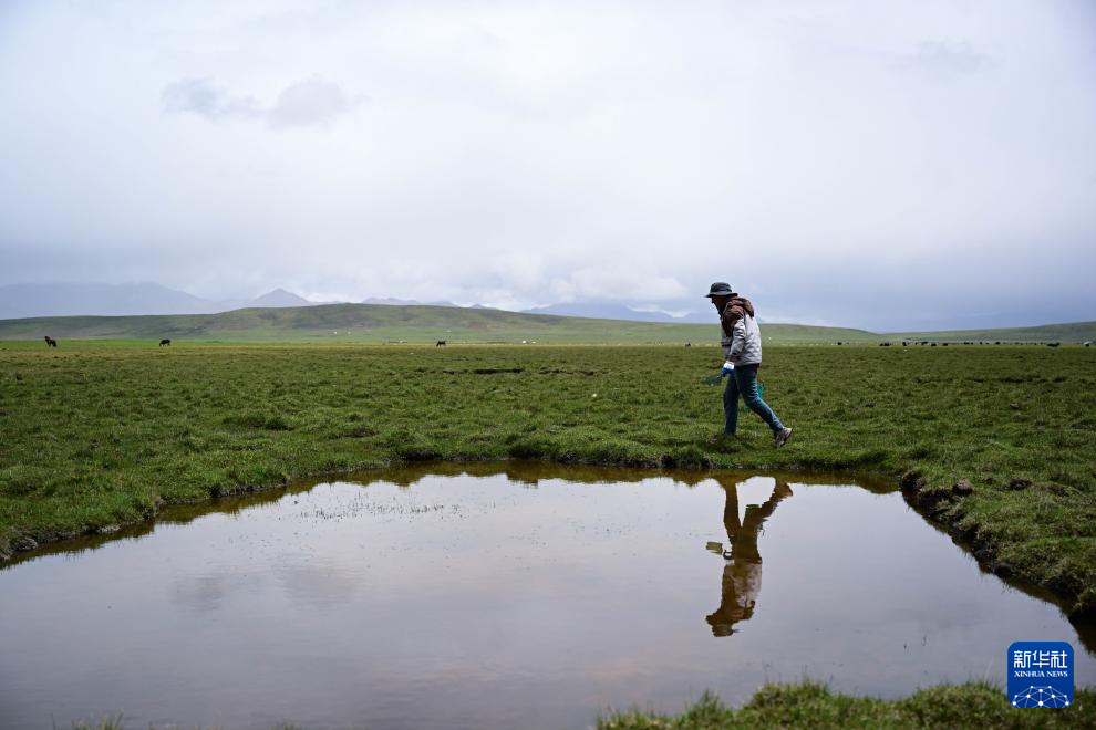6月26日,先巴尖措前往夏牧场的水源地提水。新华社记者 张龙 摄