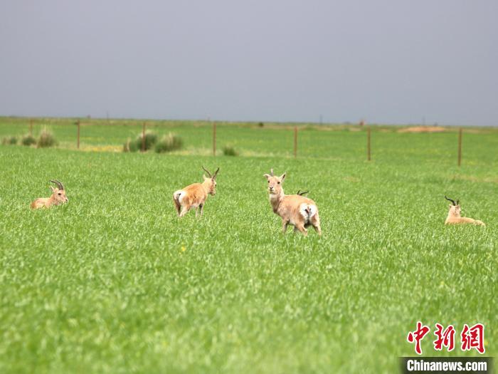 7月盛夏,摄影爱好者在位于青海湖北岸的青海省海北藏族自治州刚察县哈尔盖镇的一处耕地内,拍摄到极度濒危物种普氏原羚与正在育雏的国家一级保护动物黑颈鹤结伴觅食的和谐画面。普氏原羚是中国特有哺乳动物中数量最少的物种,也是中国甚至世界上有蹄动物中处于极度濒危的物种。青海湖湖滨地区是普氏原羚在世界上仅存的栖息地。
