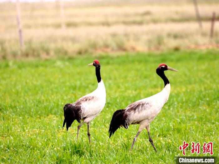 图为黑颈鹤结伴觅食。 吴永林 摄