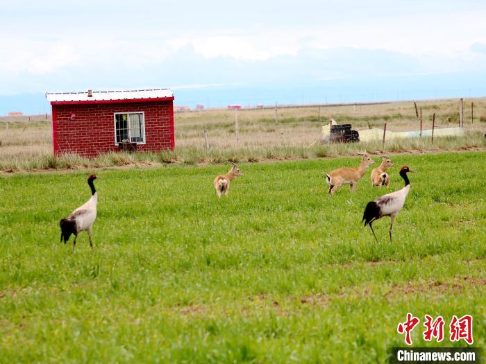图为普氏原羚与黑颈鹤“同框”。 吴永林 摄