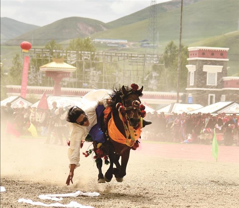 七月的玉树,扎西科草原铺展成绿绒毯,格桑花在风中摇曳,一年一度的玉树赛马会如约而至。