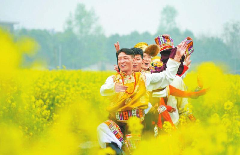 嘉绒锅庄跳进油菜花海。