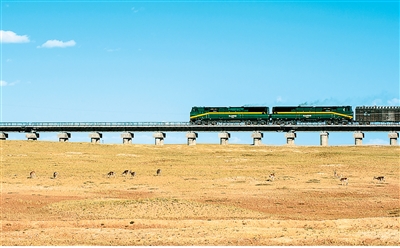 青藏铁路沿线的藏羚羊。