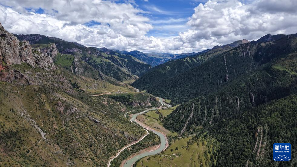 这是8月21日在青海省玉树藏族自治州囊谦县拍摄的江西林场(无人机照片)。新华社记者 齐芷玥 摄