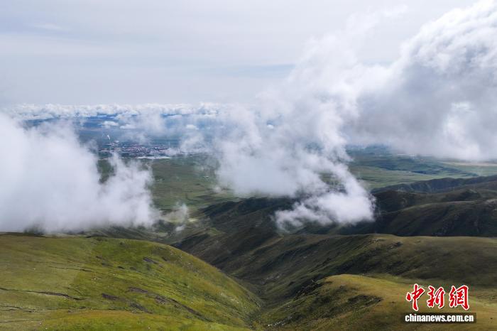 9月2日,航拍位于青海湖北岸的同宝山。同宝山地处青海省海北藏族自治州海晏县境内,素有青海湖“云端观景台”之称。中新社记者 薛蒂 摄