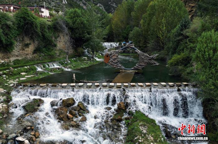 9月18日,四川省乡城县,航拍尼丁峡谷溪水形成的小瀑布。(无人机照片) 记者 王磊 摄