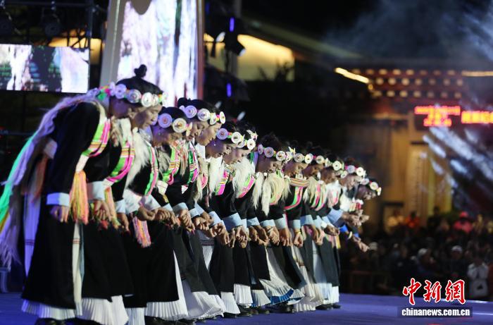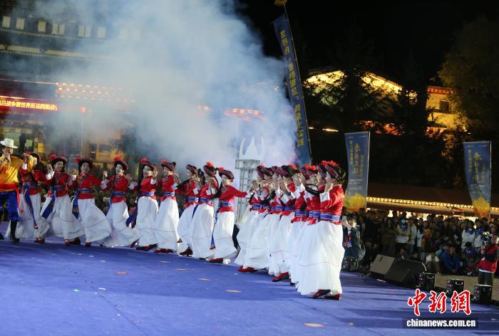 9月27日晚,丽江市代表队表演舞蹈《幸福甲搓》。中新社记者 黄兴鸿 摄