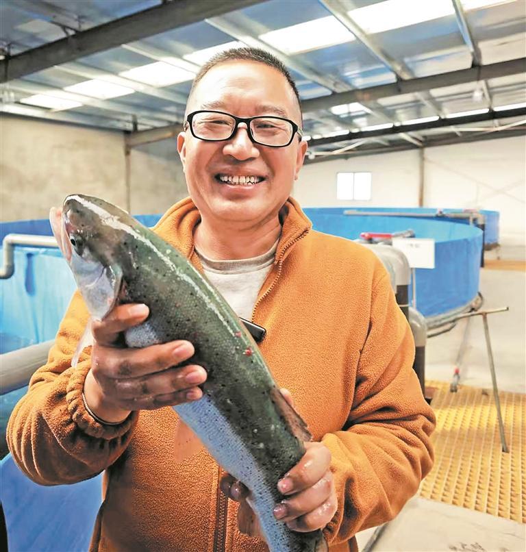 更让人惊喜的是,产业链还在持续升级。今年10月底,广州客商杜宇带着“冻眠锁鲜”技术专程来访。据杜宇介绍,这种技术能最大程度保留虹鳟鱼的新鲜度和口感,有效破解长途运输难题,为开拓更广阔市场奠定坚实基础。