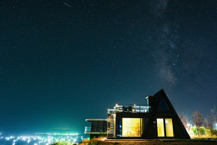 夜色渐浓,水面无数渔火与漫天繁星交相辉映,犹如星河倒转。游客高女士和同伴在崖边的“星空房”里相互拍照:“比手机上看到的壮观太多了,一下子就联想到了那句诗——醉后不知天在水,满船清梦压星河。”