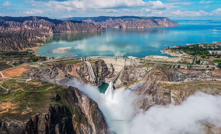 这是地处青海省海南藏族自治州的龙羊峡水电站。