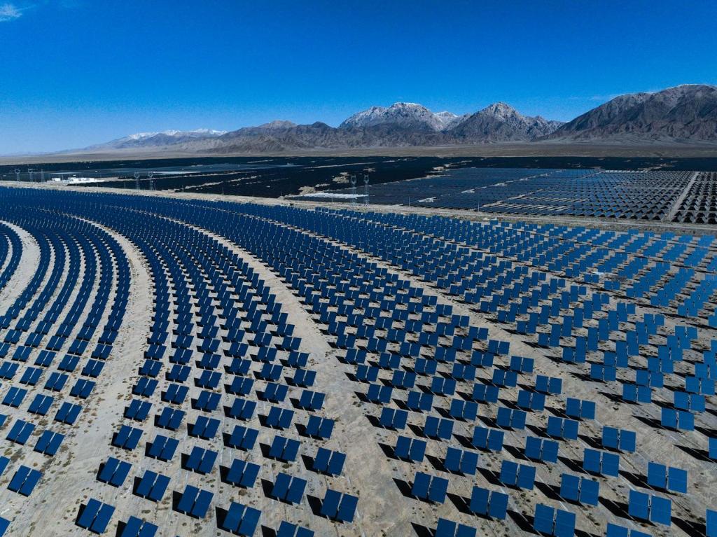 350平方公里的光伏板拼成“蓝色海洋”,高耸的光热塔闪烁着金光,风力发电机的叶片下,羊群在绿草间穿梭——走进海南藏族自治州共和县塔拉滩,曾经的不毛之地如今换了模样。