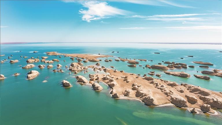 水上雅丹,戈壁与碧波交织的梦幻奇境。张地委 摄