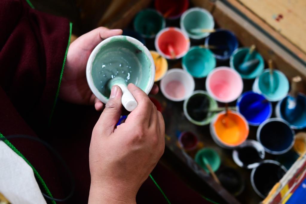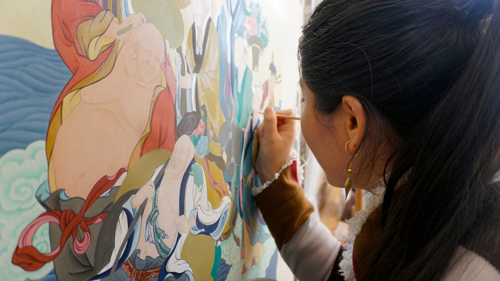 随着当地旅游发展,这门古老艺术,正悄然走进更多人的生活。同仁市是青海省唯一的国家级历史文化名城,吾屯上庄村和吾屯下庄村因“村村有画院、家家有画师”而远近闻名。随便推开一扇门,都可能遇见正在调颜料的画师。