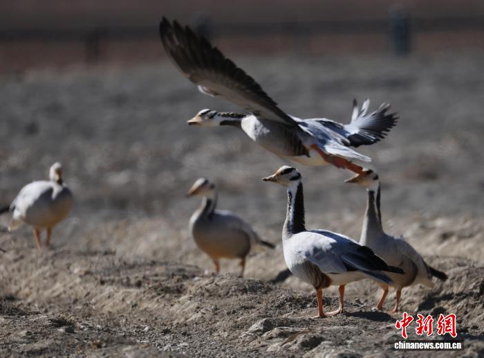 1月22日,几只斑头雁在纳帕海嬉戏。黄兴鸿 摄